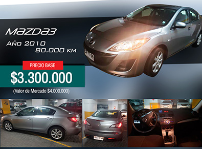 Recuerda que para participar en la subasta silenciosa del Mazda3 2010, sólo debes dejar un sobre con tu nombre, teléfono y el monto ofrecido en nuestro buzón ubicado en las oficinas de DHYSO. |