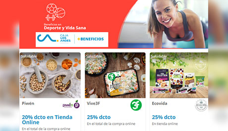 Ingresa a la página de caja Los Andes y podrás ver descuentos en alimentos saludables: https://masbeneficios.cajalosandes.cl/deporte-y-vida-sana |